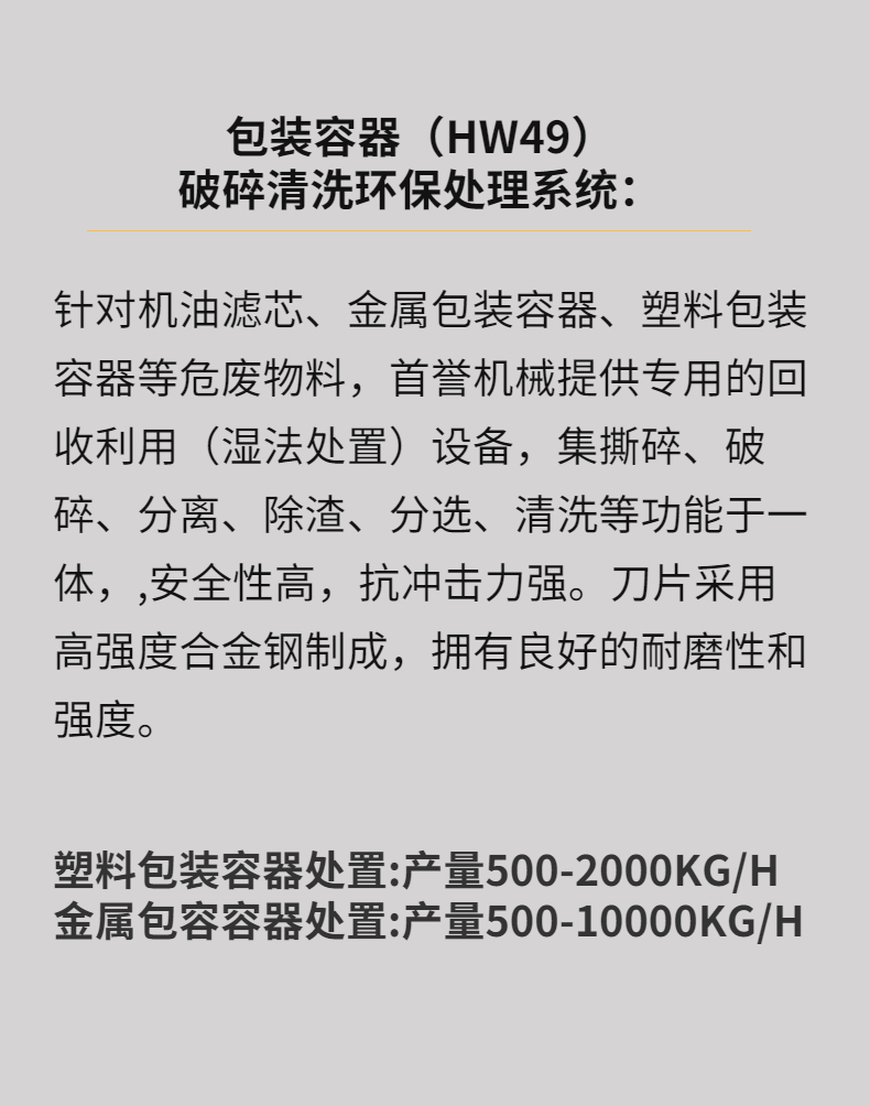 包裝容器(HW49)環(huán)保處理系統(tǒng)