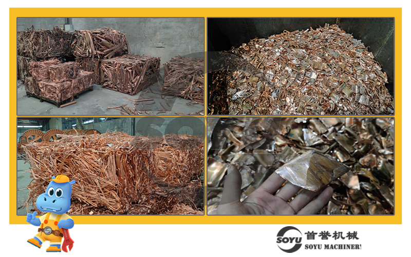 針對(duì)光亮銅等物料,首譽(yù)提供專(zhuān)業(yè)的破碎分選打包系統(tǒng),產(chǎn)量可達(dá)到3-10噸/小時(shí),適用于處理光亮銅(紫銅管、銅線)等。