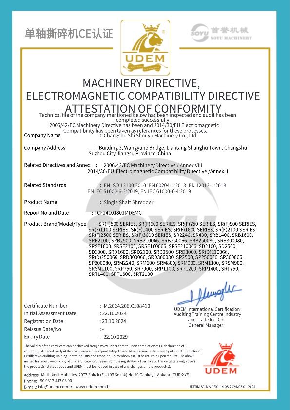 單軸撕碎機CE證書