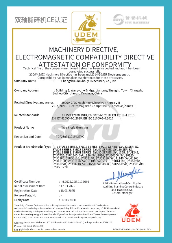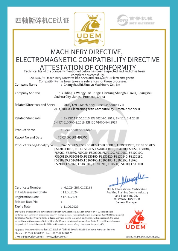 雙軸撕碎機CE證書